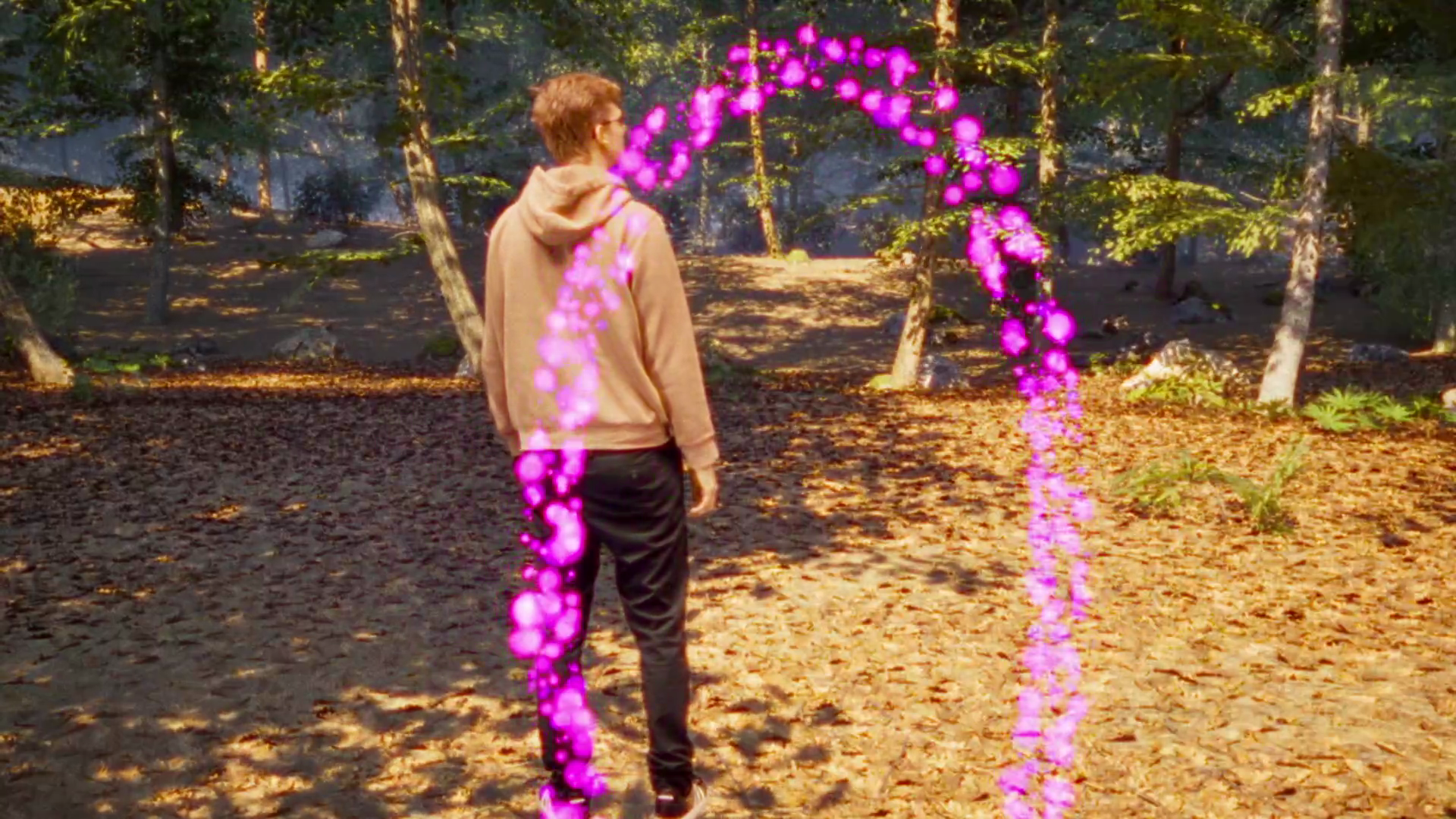 An egocentric camera perspective was created using a hand-held tracked camera, producing natural camera moves.