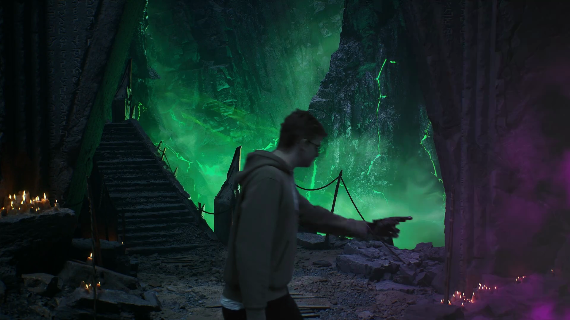 Most parts were rendered in real-time, but the video consists out of many different takes. The shaking of the subway was done in the post.